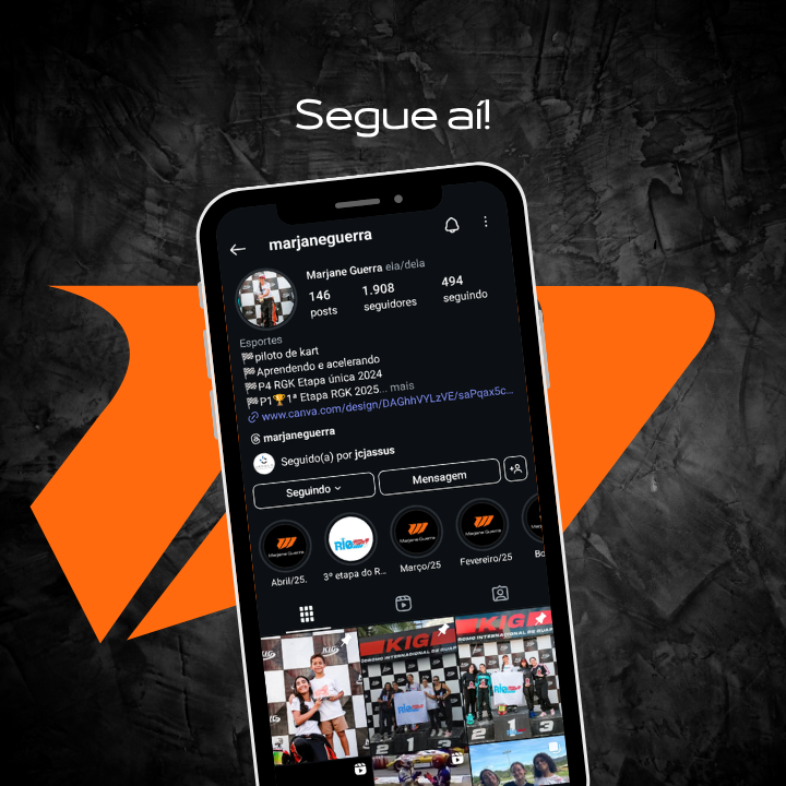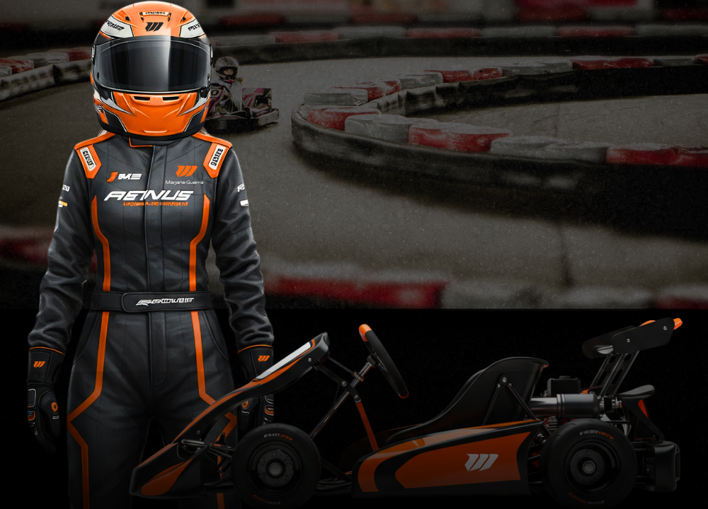 A identidade visual de Marjane Guerra nasce da simbiose absoluta entre piloto, máquina e pista. O conceito explora o estado de ‘flow’ das pistas, onde os limites entre o corpo e a engenharia desaparecem. O símbolo gráfico não apenas representa o movimento, mas traduz a aerodinâmica e a precisão técnica. É uma marca orgânica e pulsante, desenhada para fluir com as curvas do circuito e personificar a busca incessante pela performance ideal. Aqui, o traço é o próprio rastro da velocidade.