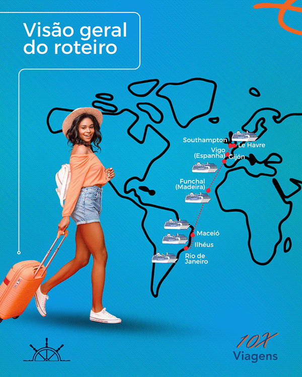 Para a 10x Viagens, o Instagram não é apenas uma rede social, mas um dos seus principais ativos digitais. Meu trabalho no desenvolvimento das artes foca em transformar destinos em desejo e informações complexas em autoridade visual.
