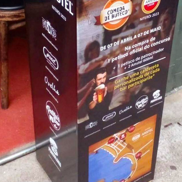 O craft da campanha estendeu-se ao PDV, onde desdobramos a identidade visual em materiais exclusivos, como displays de mesa e urnas de votação. Dessa forma, essa execução garantiu uma presença de marca proprietária em cada um dos 22 bares participantes.