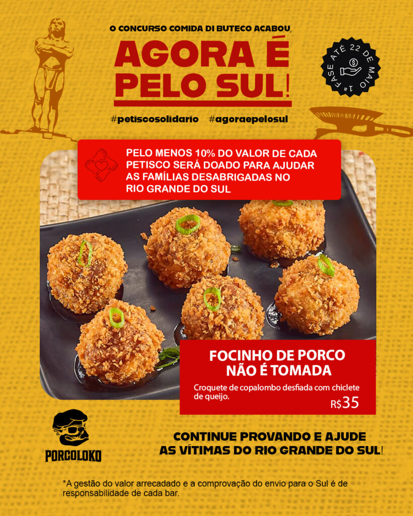 Além disso, esta edição foi marcada pela tragédia climática no Sul do país. No entanto, a festa gastronômica deu lugar à solidariedade em uma corrente de apoio. Nesse sentido, os bares participantes destinaram parte da renda dos petiscos às vítimas do Rio Grande do Sul. Por fim, desenvolvi uma campanha paralela impactante para comunicar essa causa com sensibilidade.